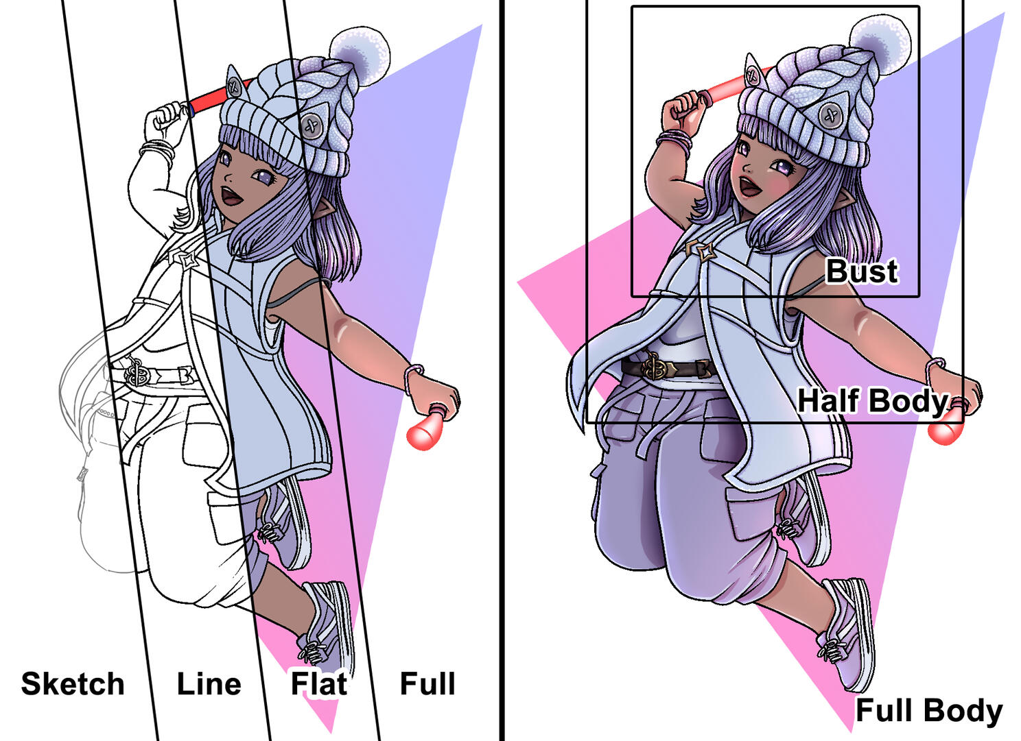 Payment will be taken once I am ready to begin work, and will be conducted through paypal invoice. No work on the commission will be done until payment has been received. All prices are listed in USD.Commission progress will be sent at sketch, lineart and flat color and shaded color stage during which feedback can be given to ensure the commission is proceeding as desired. I will make minor changes up to 2 times per stage, but I will not redraw something entirely beyond the initial sketch stage, or go back to a previous stage after progress was approved.